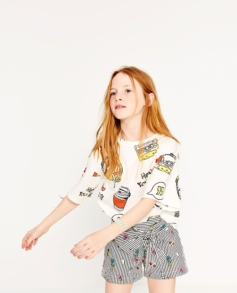 Printed T-shirt with round neck and short sleeves